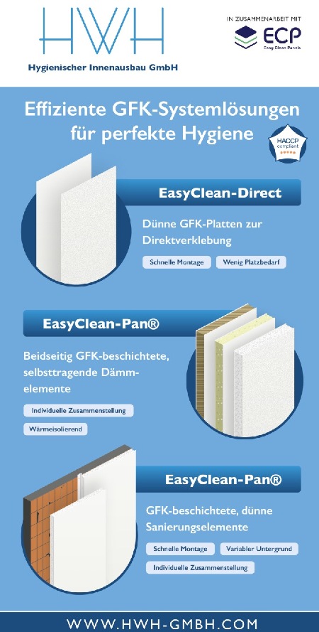 Bäckerei abgehangene Decke mit PVC Paneelen Wände GFK Paneelen Glasliner